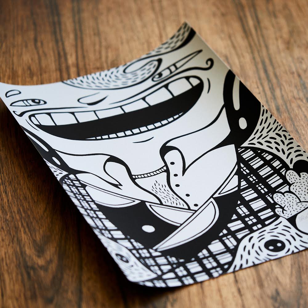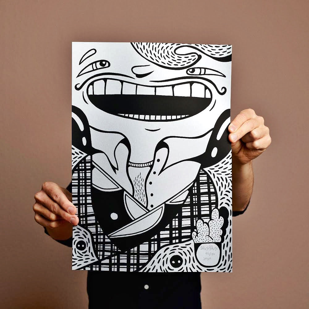 Dette print er et håndtrukket silketryk lavet på Le Raclet Printing Studio i Berlin. 2 lag ægte maling: Sølv og sort. Lavet på 250 g. Fedrigoni papir.