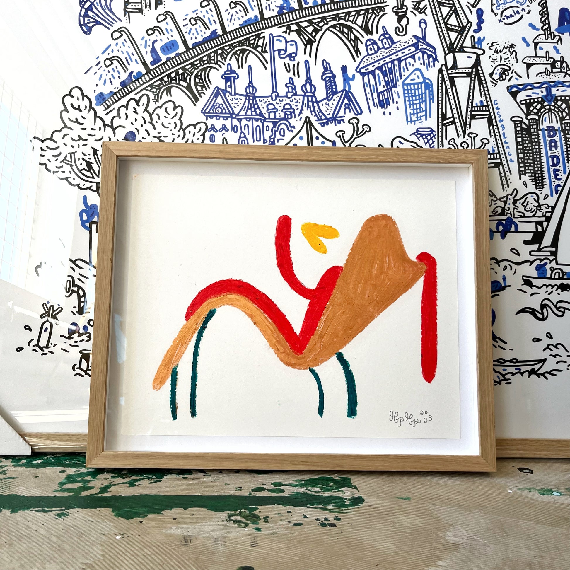 Håndindrammet i egetræ og UV museumsglas. Klar til at hænge op på væggen.