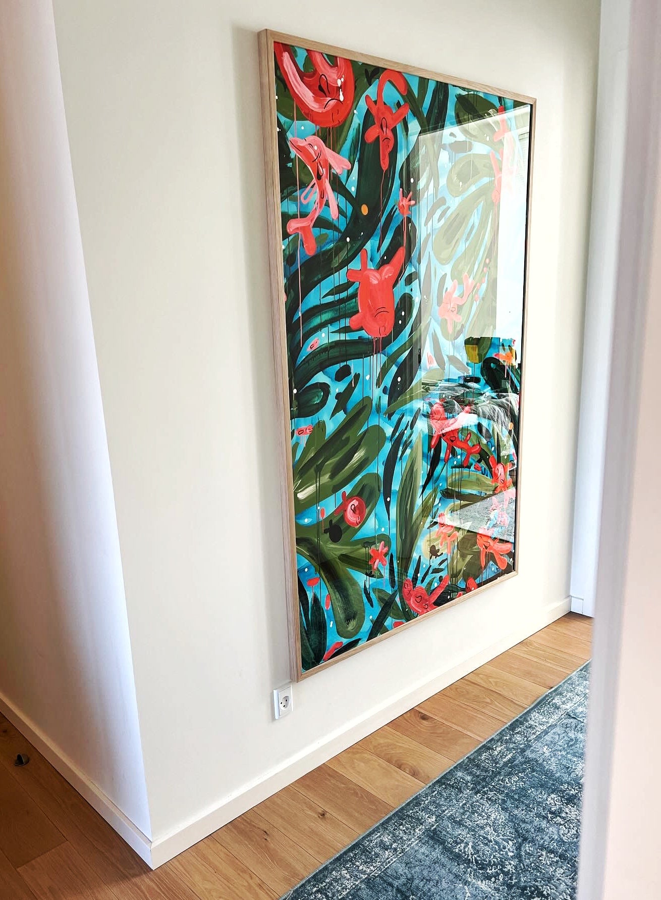 En ramme der vil gå godt med værket er egetræ eller malet sort eg. Her vil du også kunne se listerne / rammerne med egne øjne ved besøg i butikken.