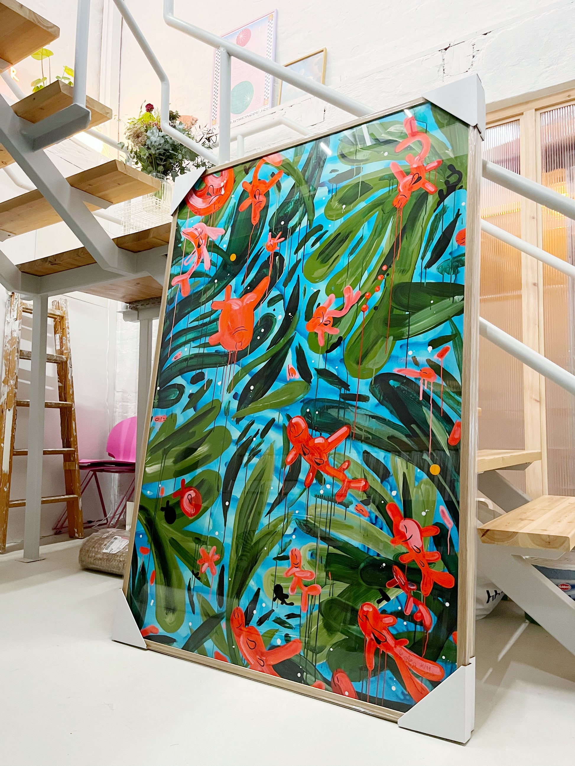 Bare send mig en mail eller ring, hvis jeg skal levere værket direkte ned til indrammeren ellers sendes værket med GLS i et hårdt rør.