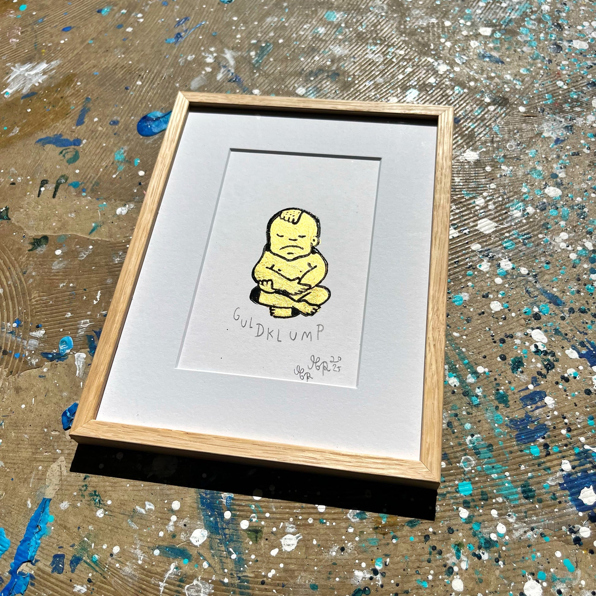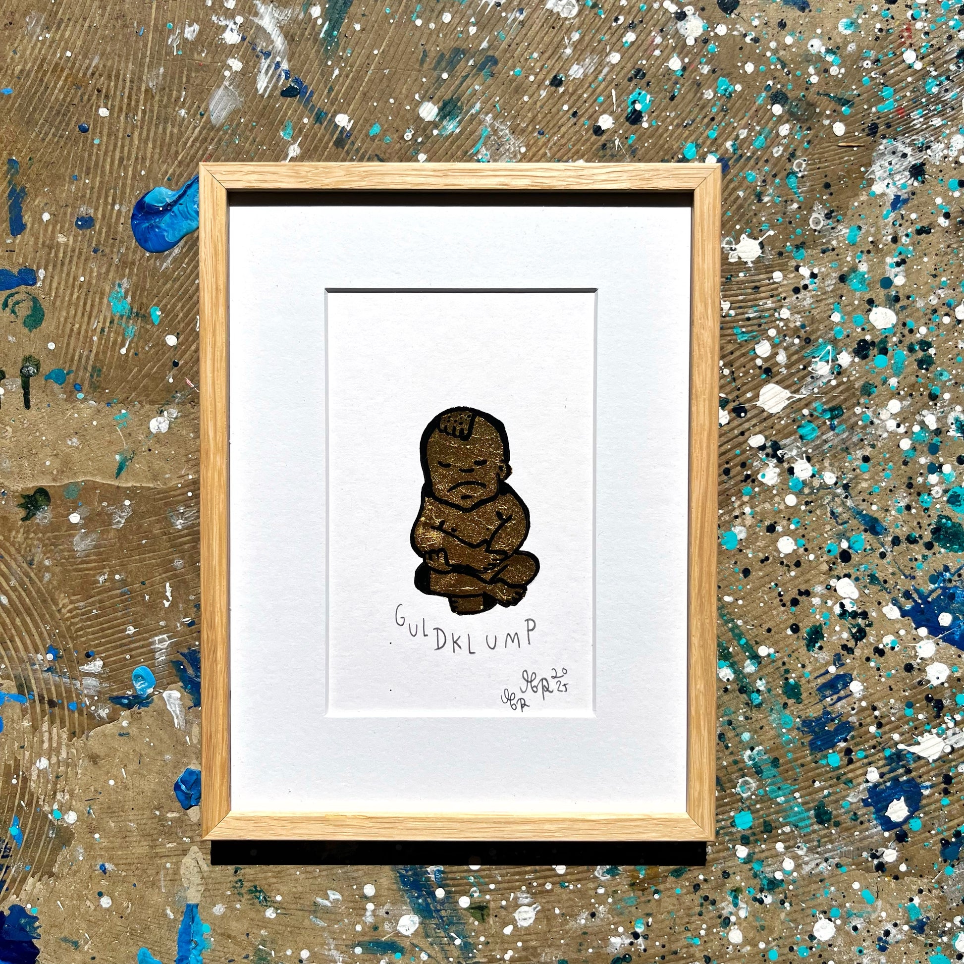 Unika værk lavet med 23,75 karat bladguld. Monteret på 400 g syrefrit Hahnemühle papir. Indrammet i eg og UV Museumsglas.