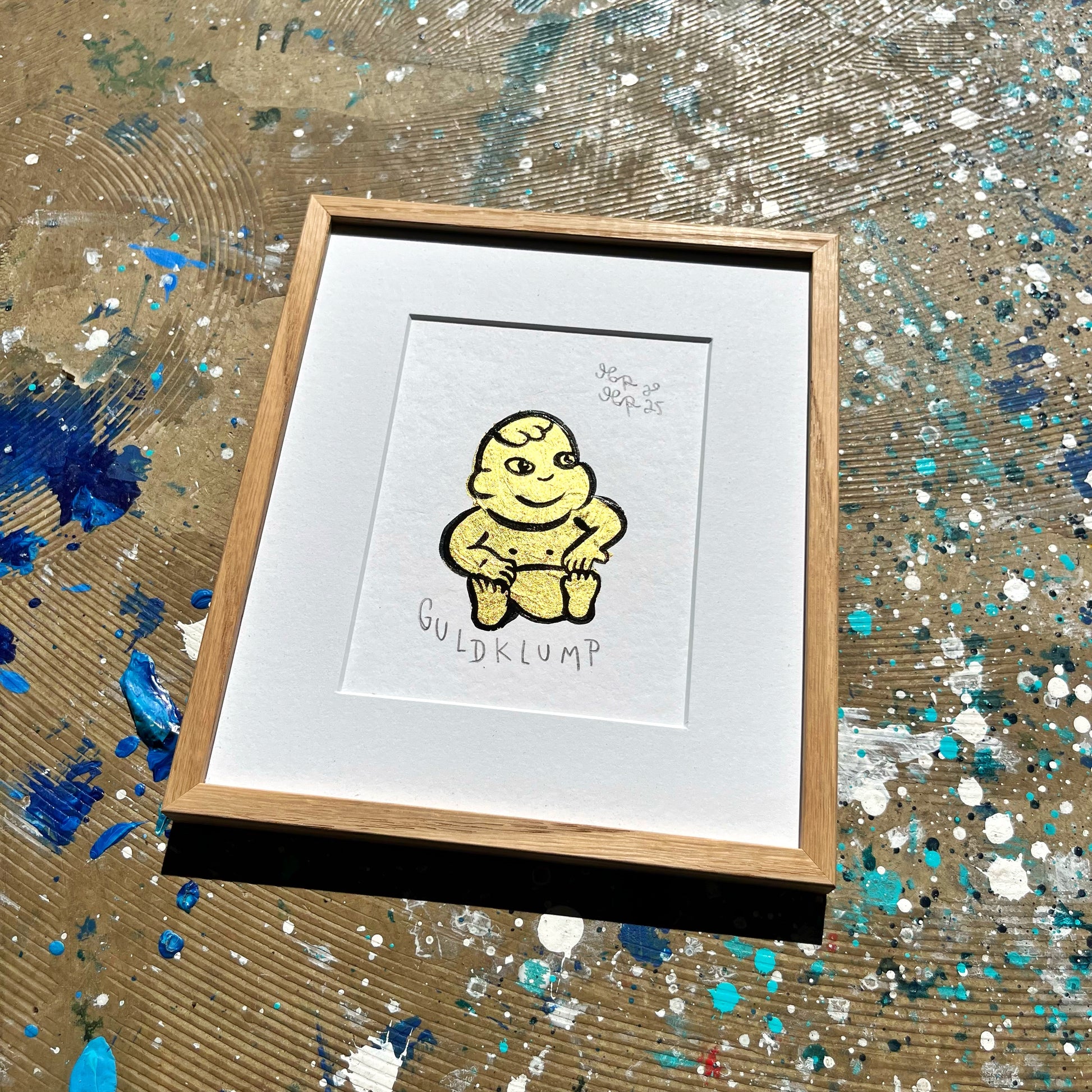 Unika værk lavet med 23,75 karat bladguld. Monteret på 400 g syrefrit Hahnemühle papir. Indrammet i eg og UV Museumsglas.