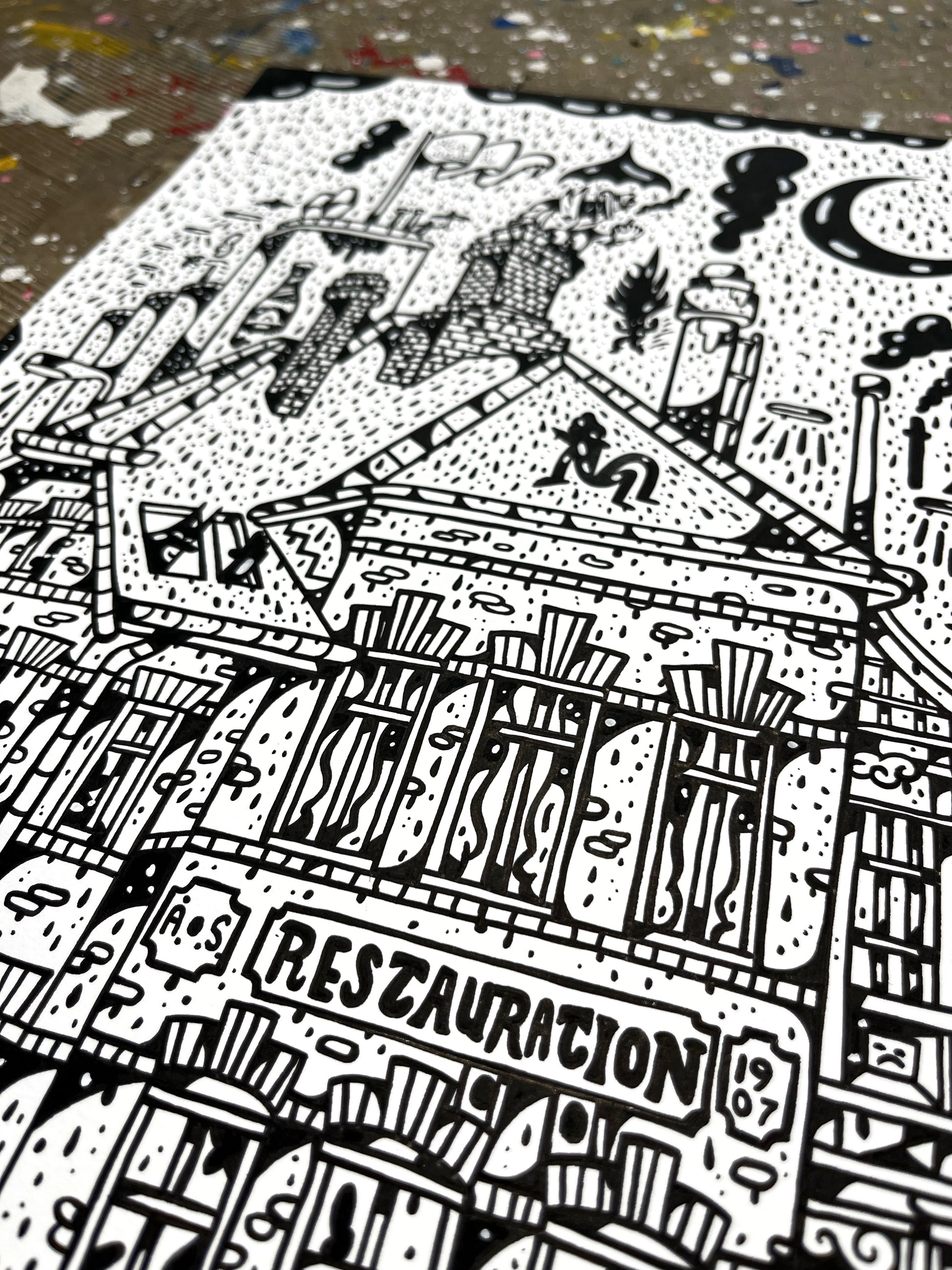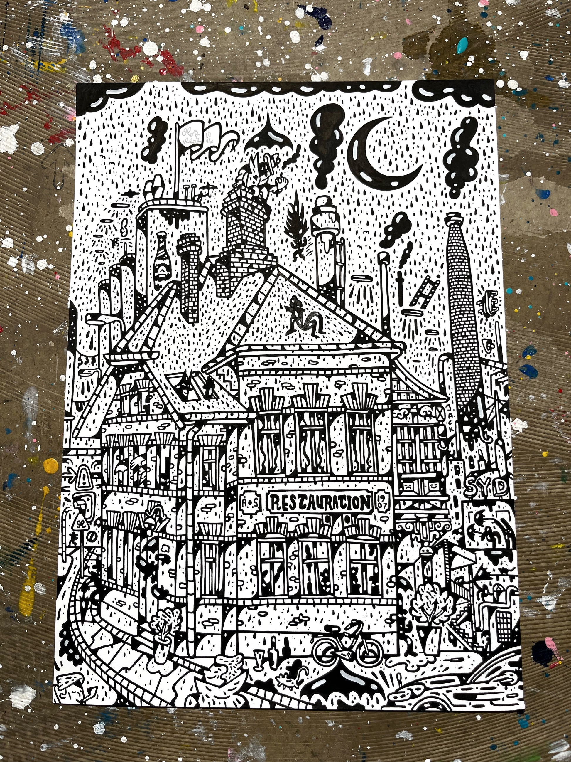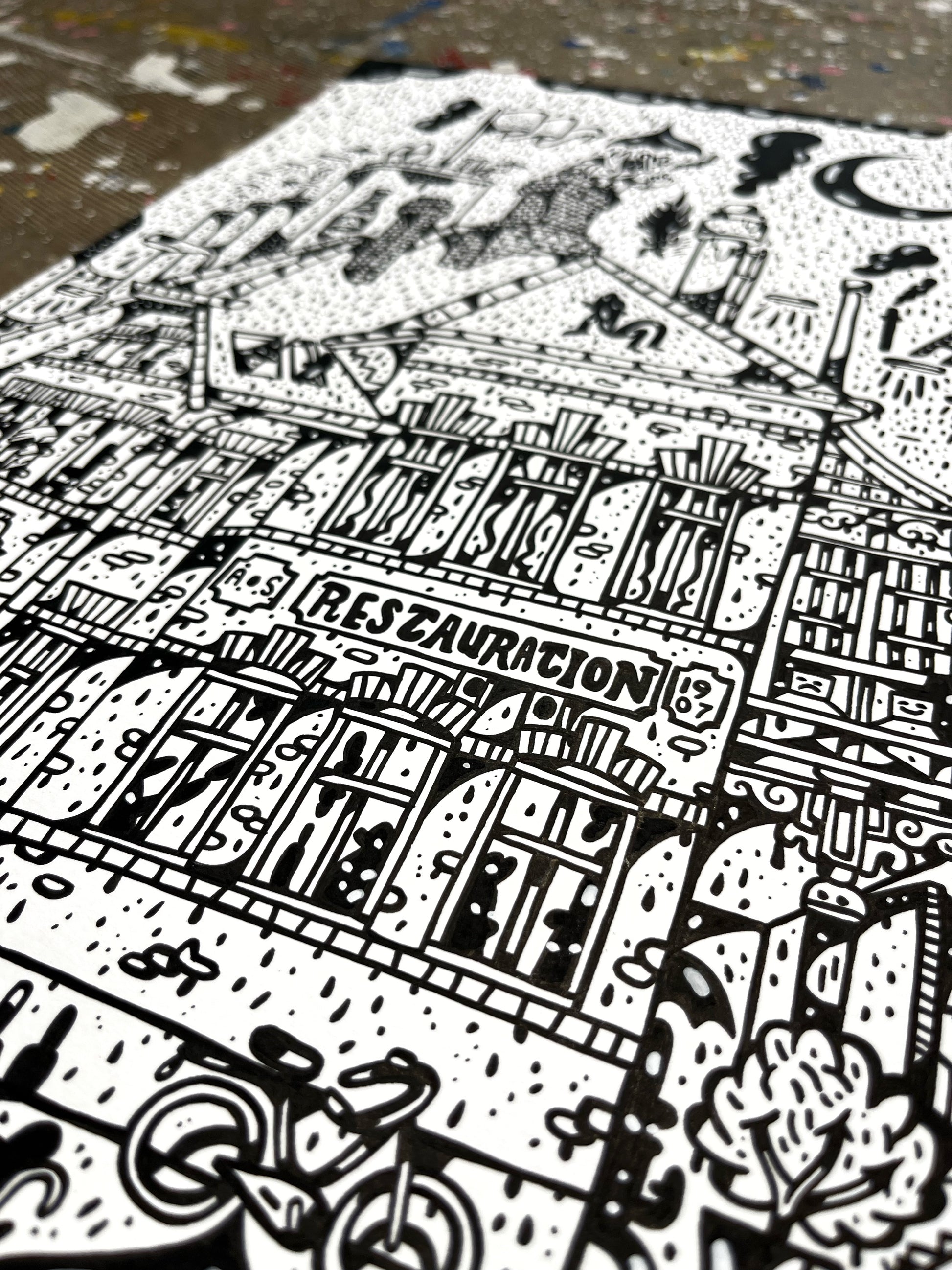 Posca på syrefrit Hahnemühle papir. 210 gr.