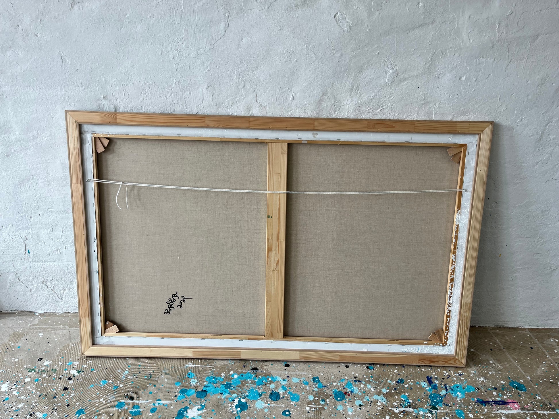 Akryl på håndlavet hør canvas. Indrammet i ubehandlet egetræ.