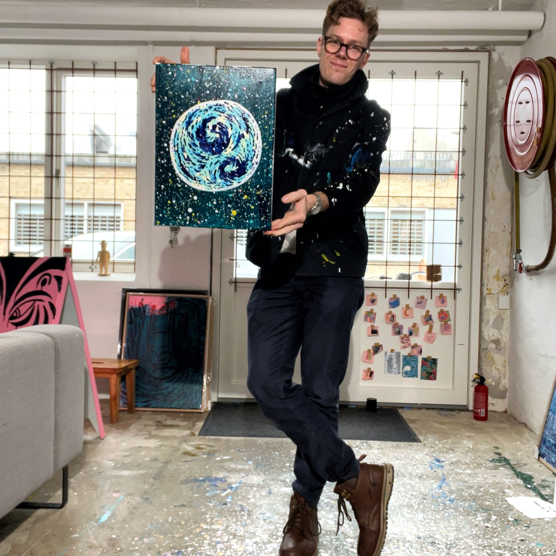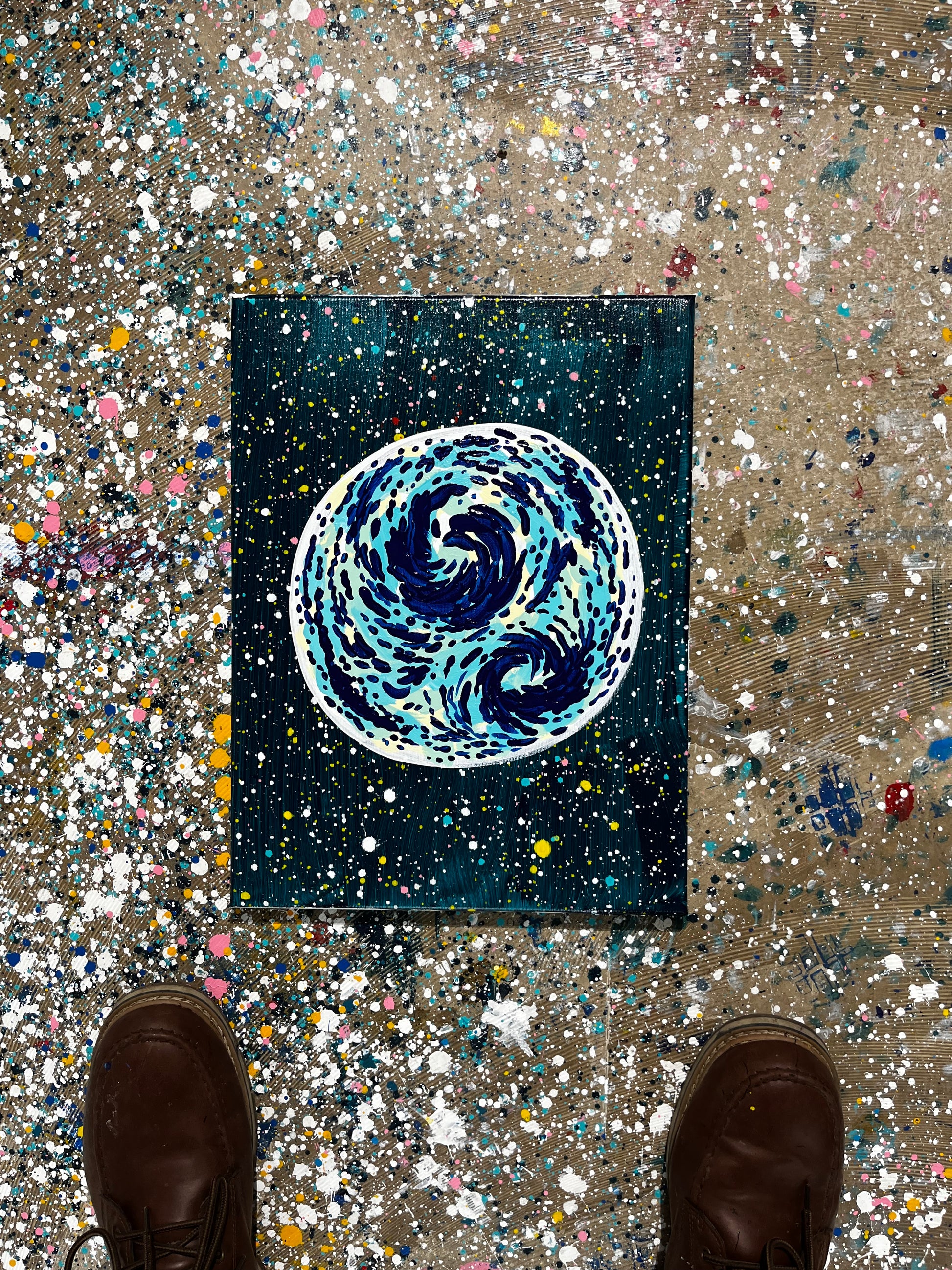 Unika maleri på håndbygget canvas. Lavet med lak og akryl. Underskrevet på bagsiden. Kan afhentes i atelieret eller sendes i en hård pakke.
