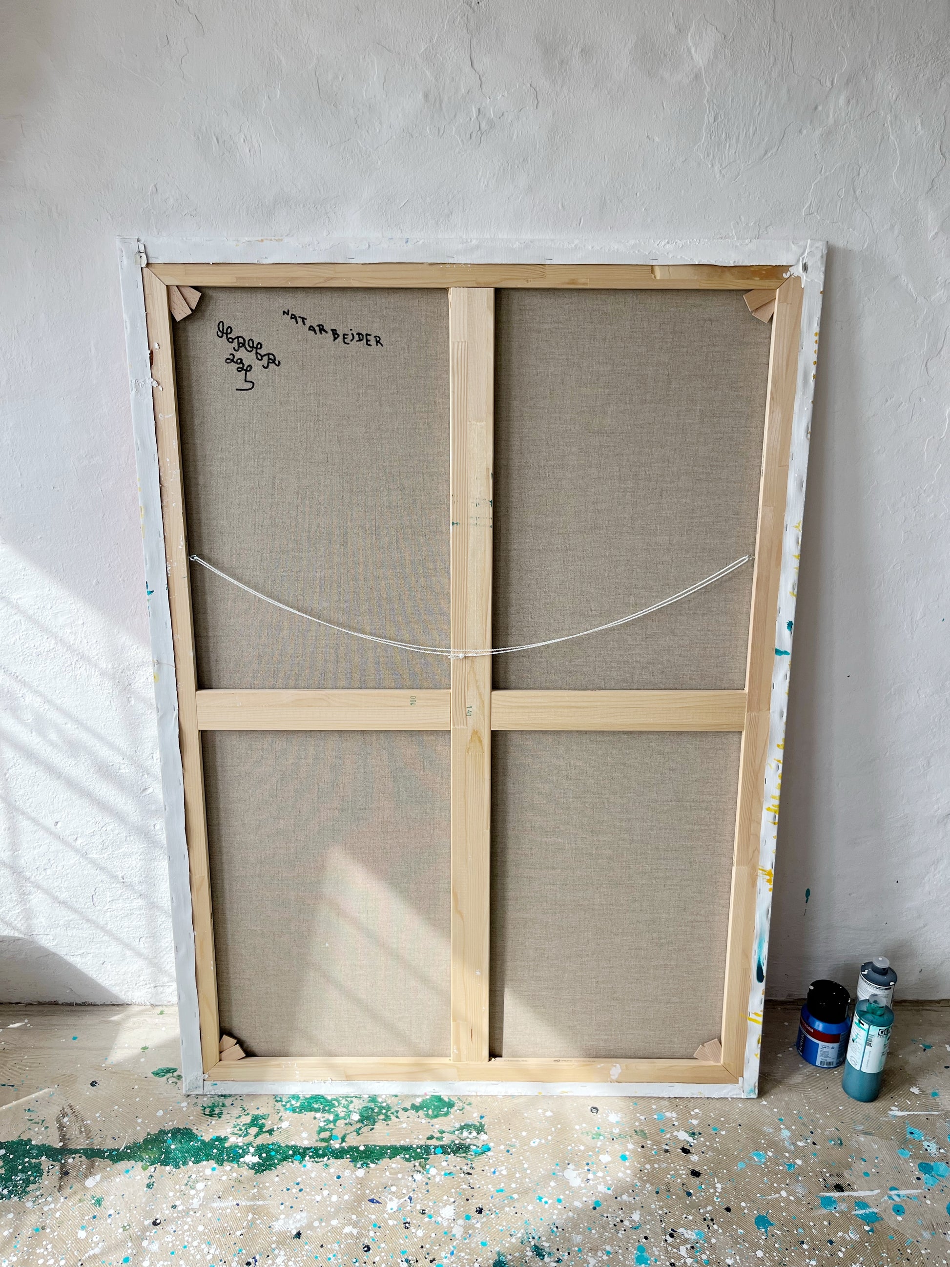 Akryl og oliestick på håndlavet hør lærred.