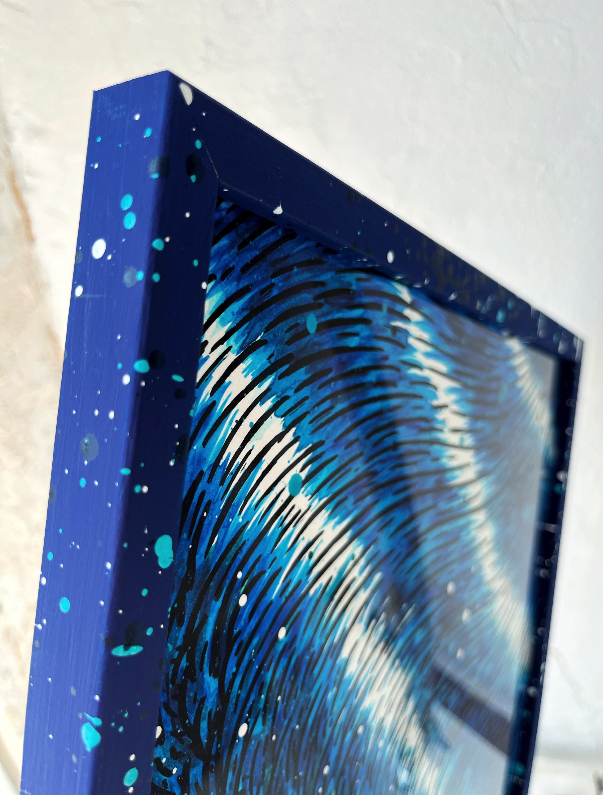 Håndindrammet i UV Museumsglas og håndmalet liste.