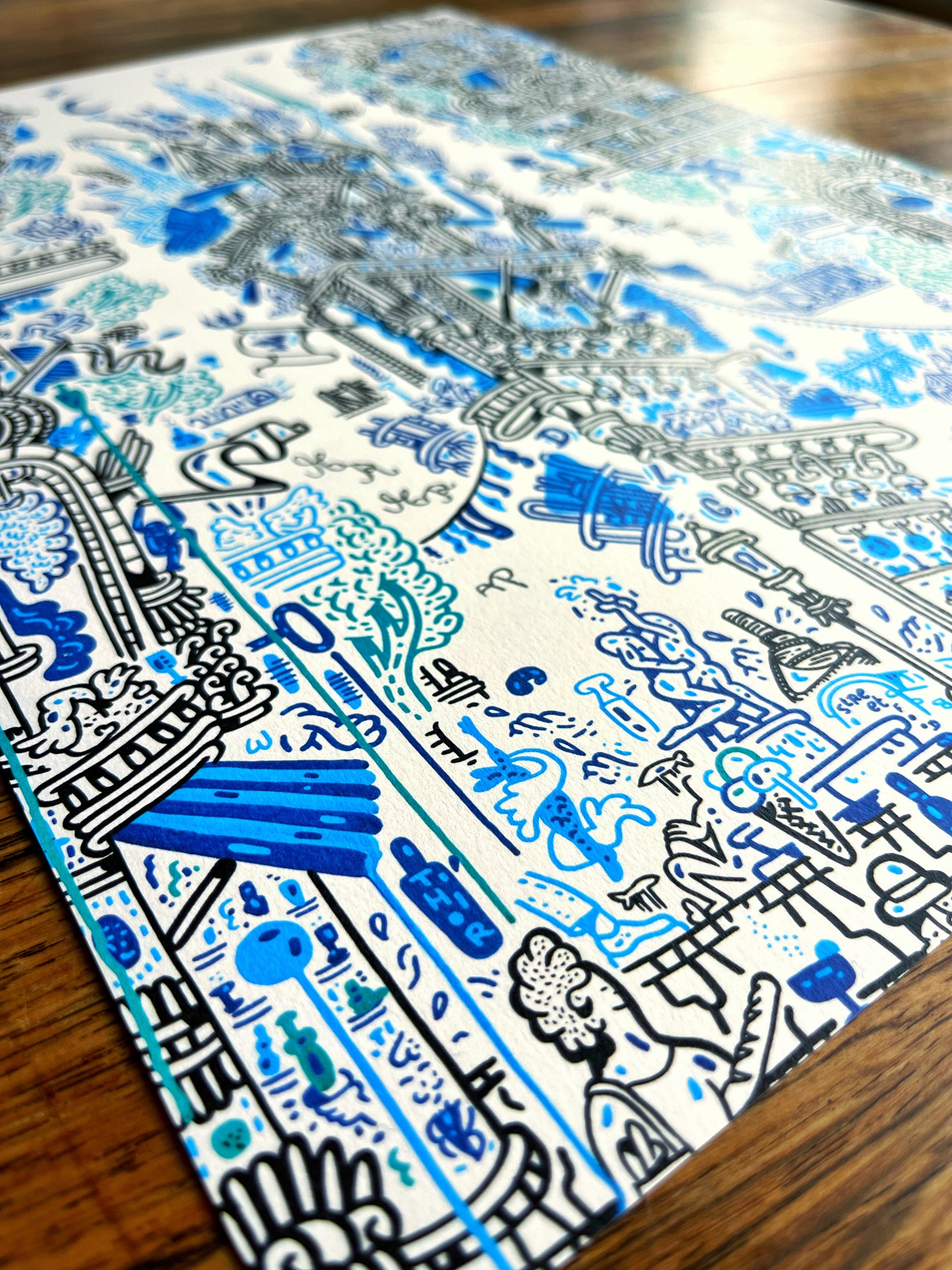 Print på syrefri Fabriano 200 gr. Papir. Skåret til kant. Printet professionelt hos Plotteriet i Aarhus.