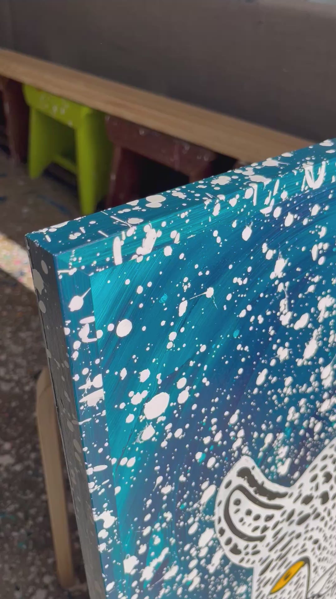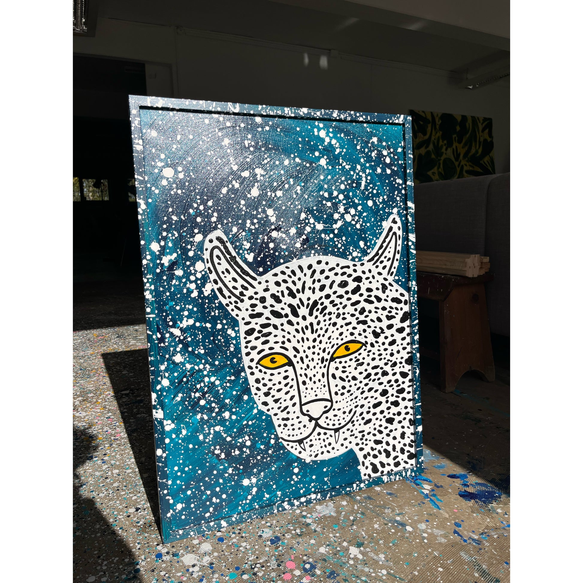 Lavet med akryl og lak på lærred.