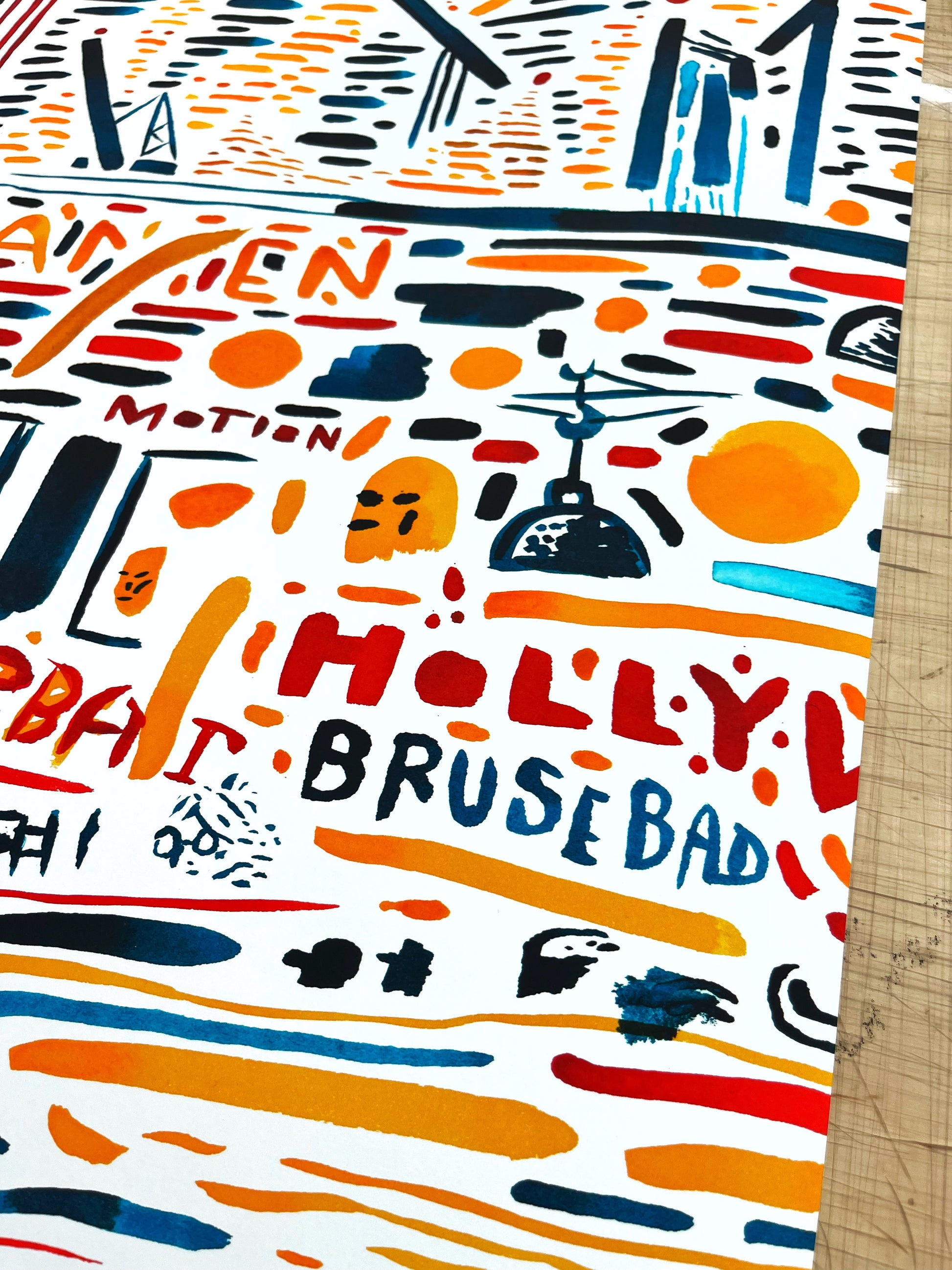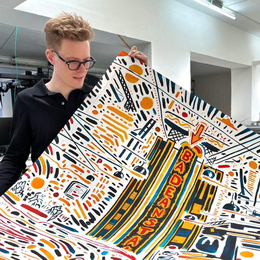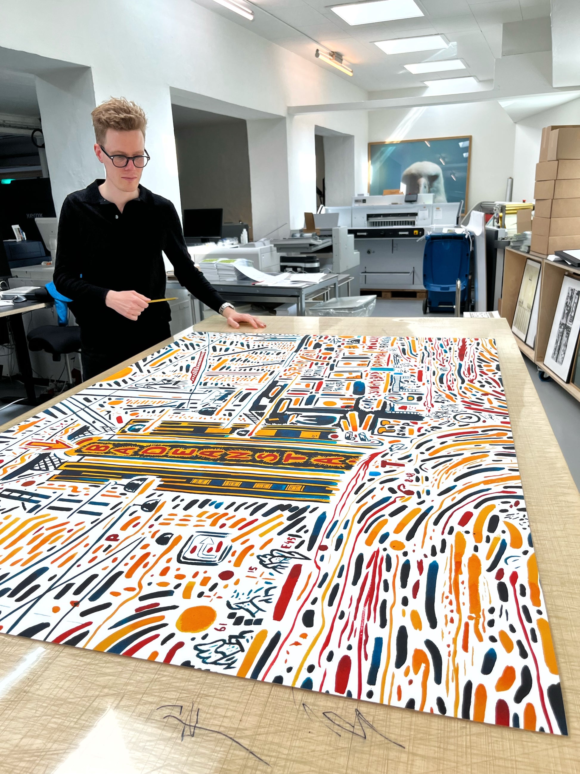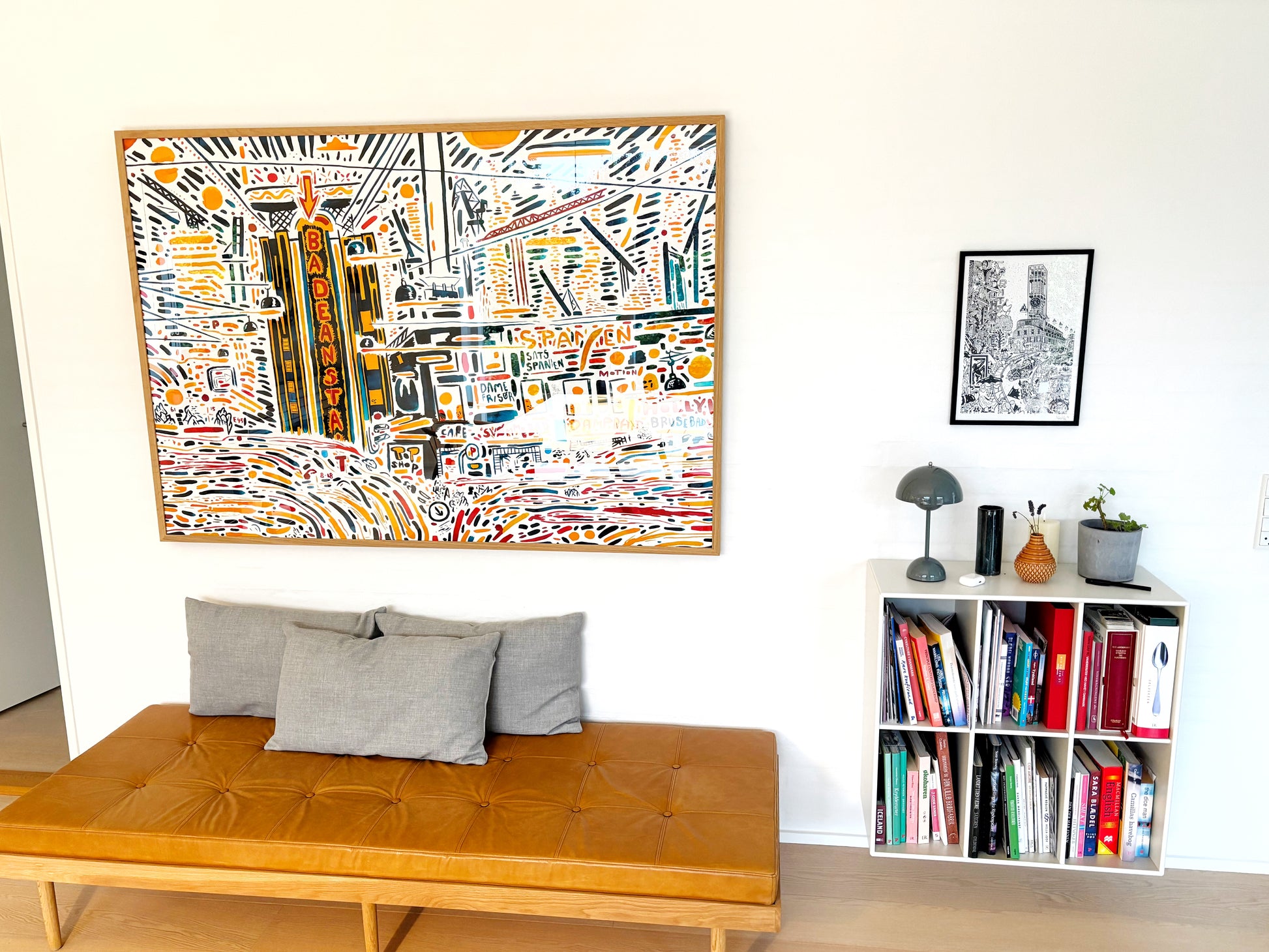 Bare send mig en mail eller ring, hvis jeg skal levere værket direkte ned til indrammeren ellers sendes værket med GLS i et hårdt rør.