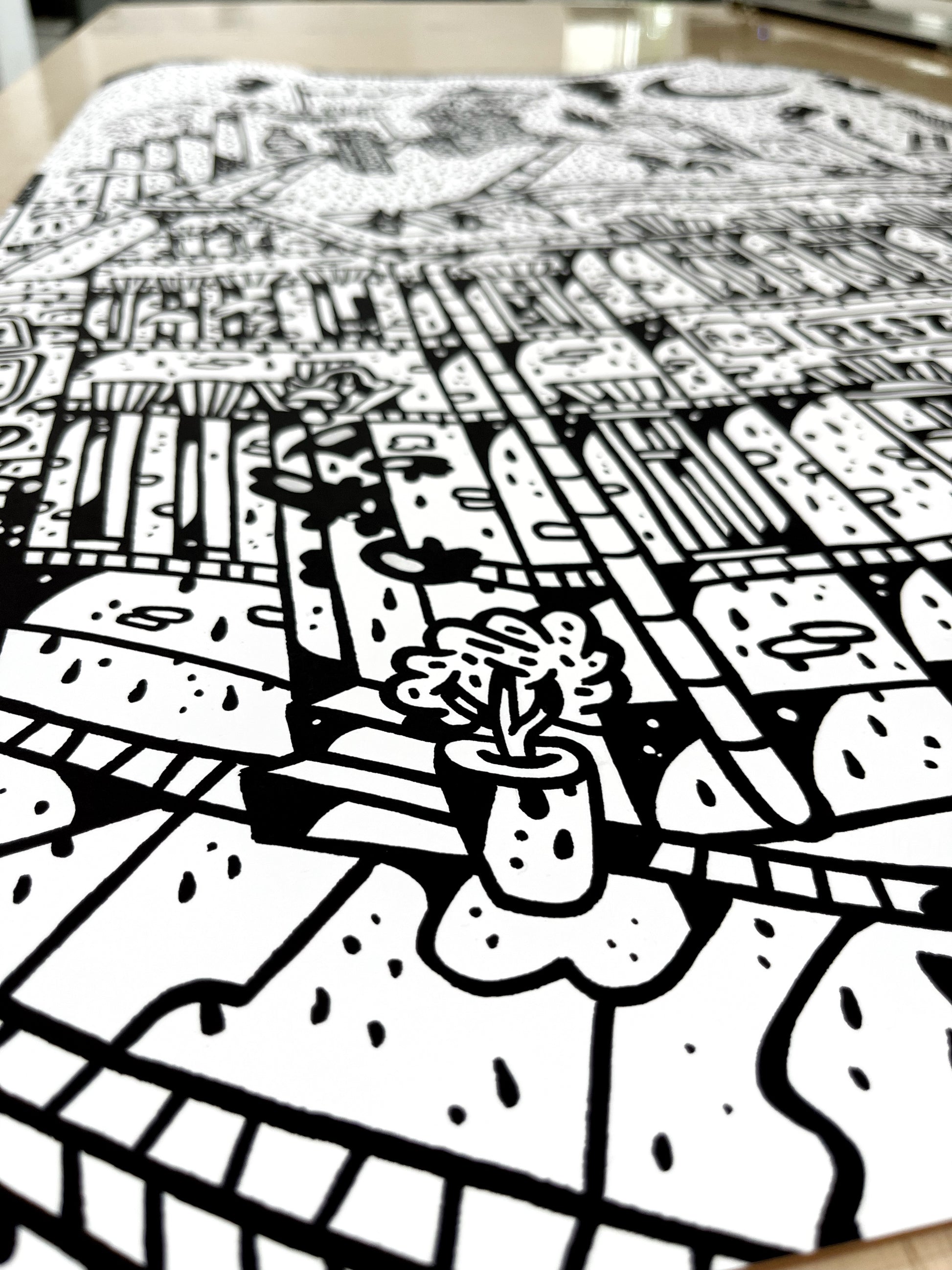 Print på syrefrit 210 gr. Hahnemühle papir. Printet professionelt hos Plotteriet i Aarhus.