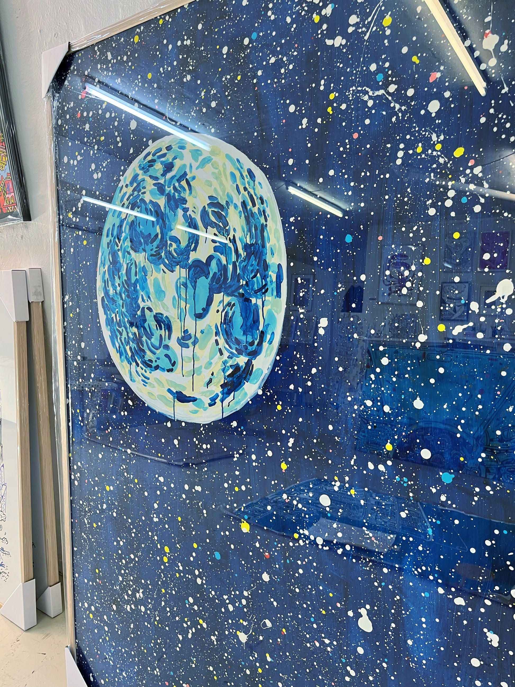 Bare send mig en mail eller ring, hvis jeg skal levere værket direkte ned til indrammeren ellers sendes værket med GLS i et hårdt rør.