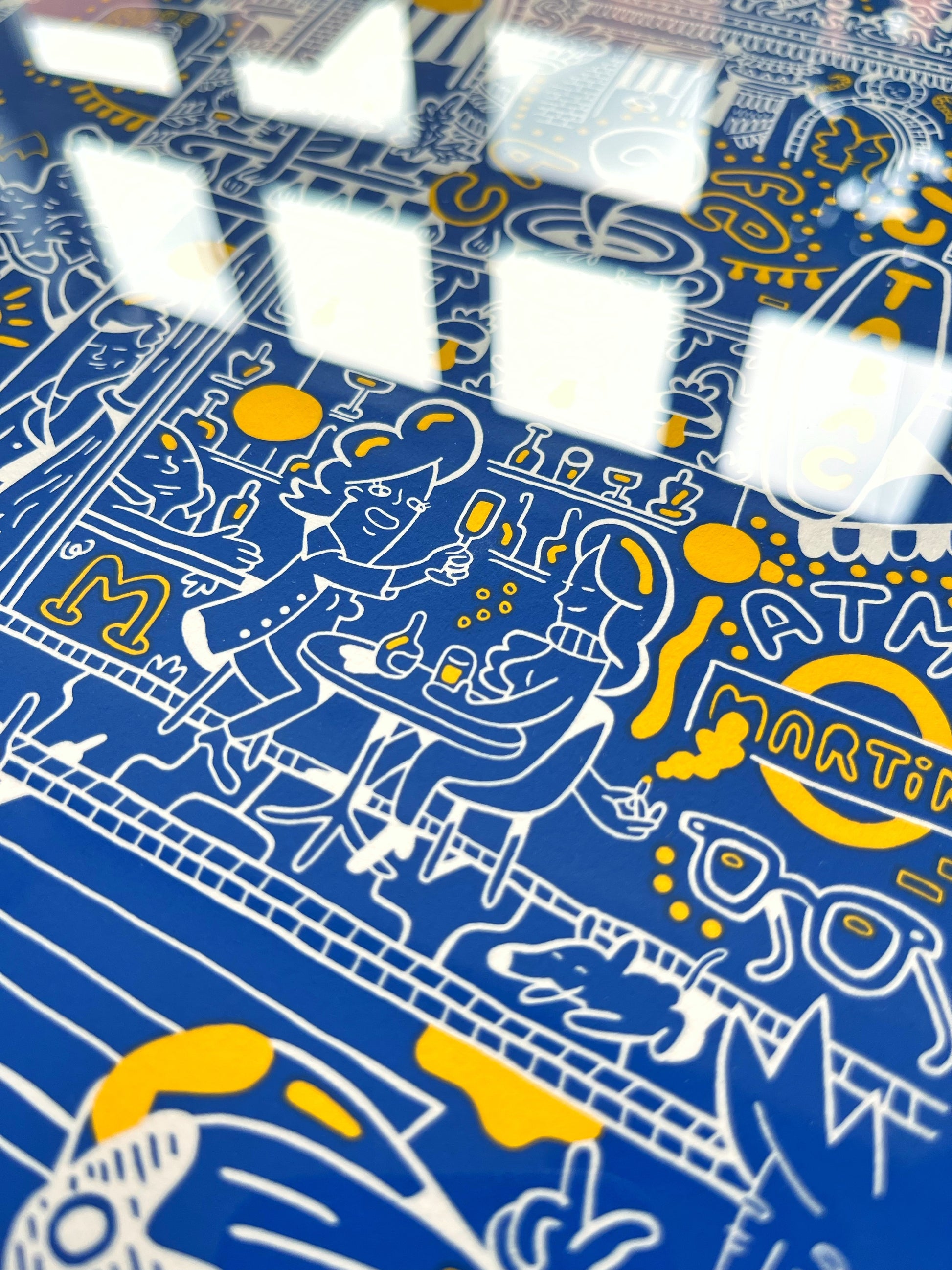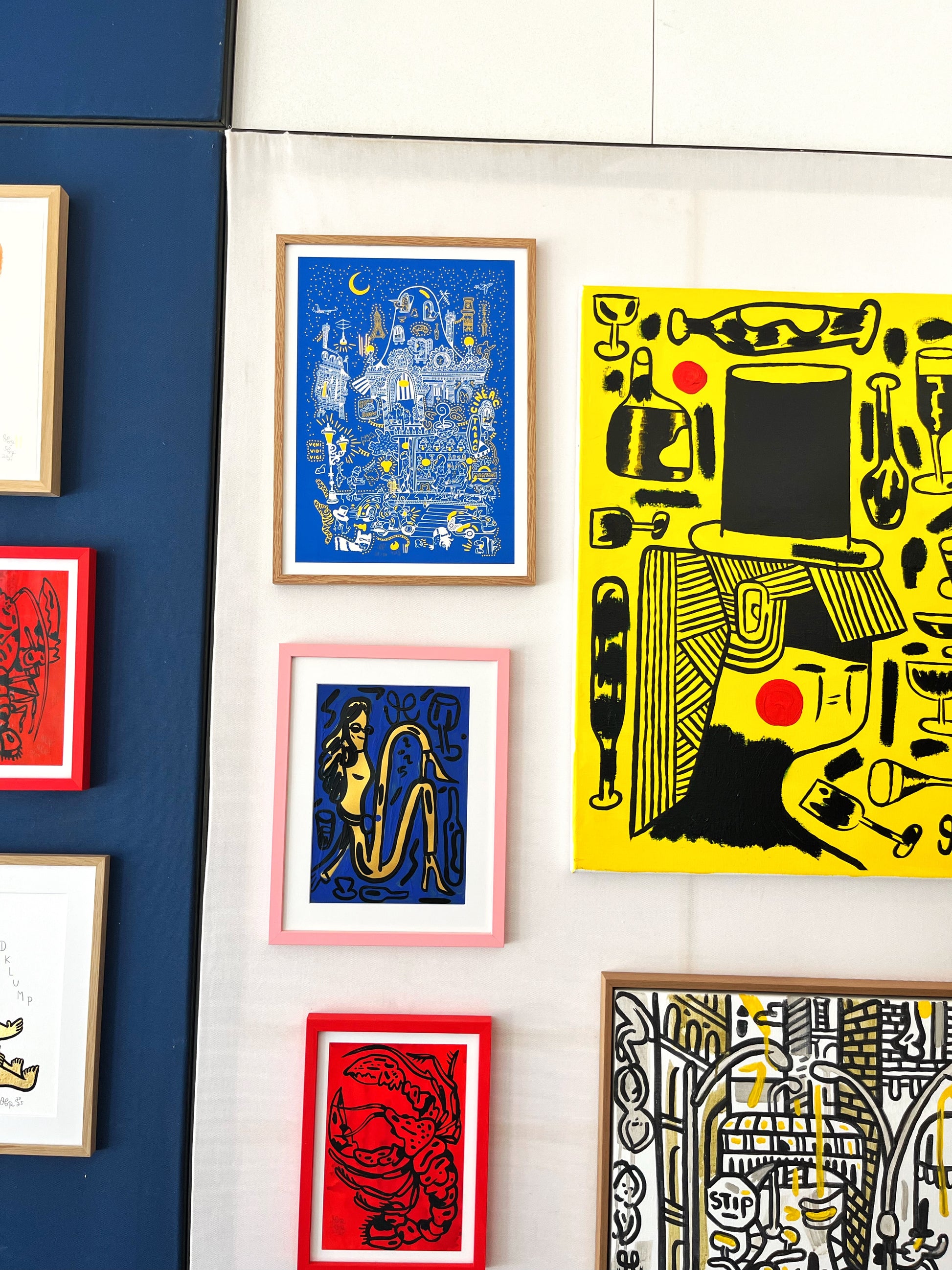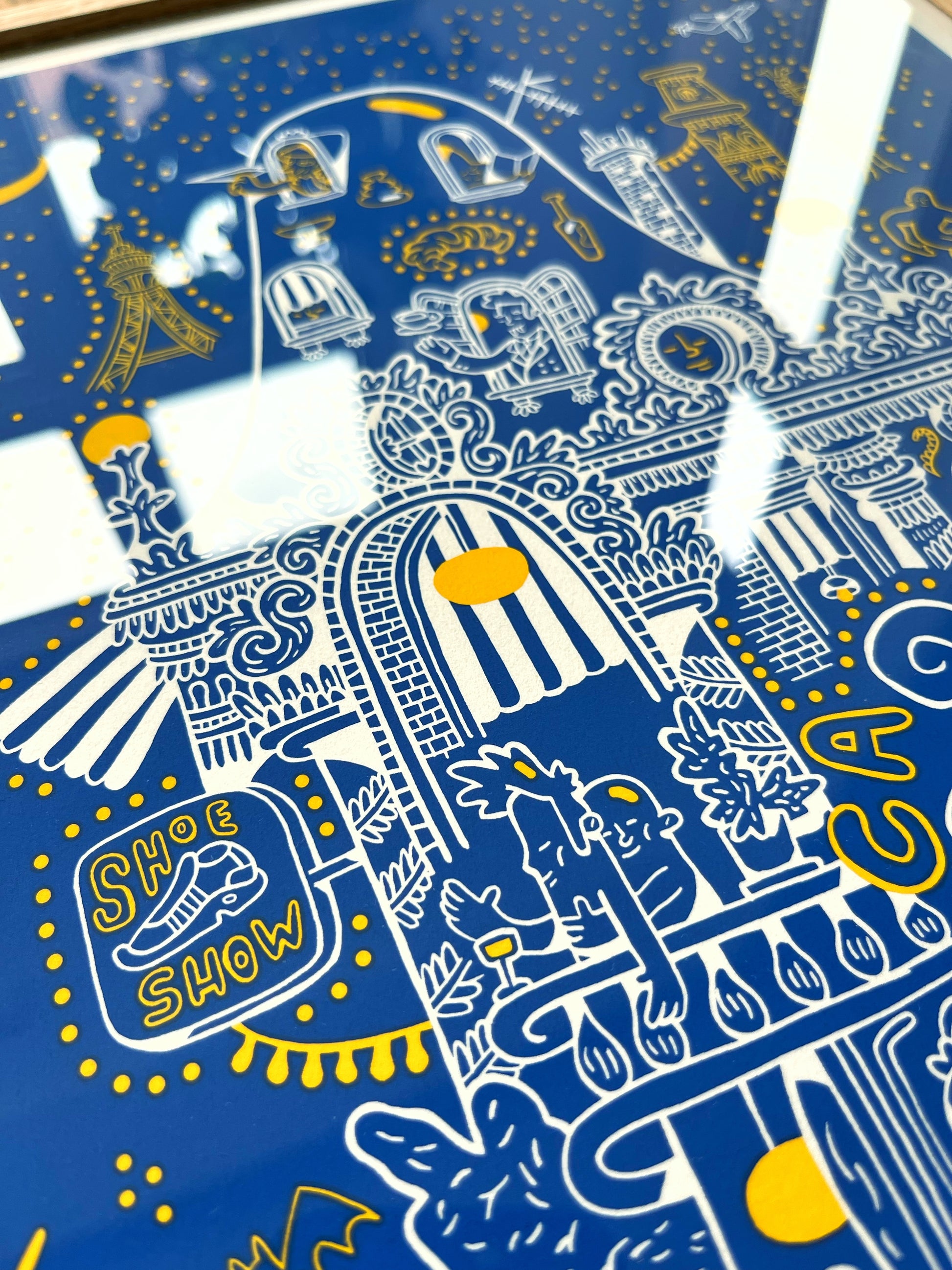 Lækkert syrefrit håndlavet silketryk i tre farver. Håndindrammet i egetræ. UV Museumsglas. Klar til ophængning på væggen.