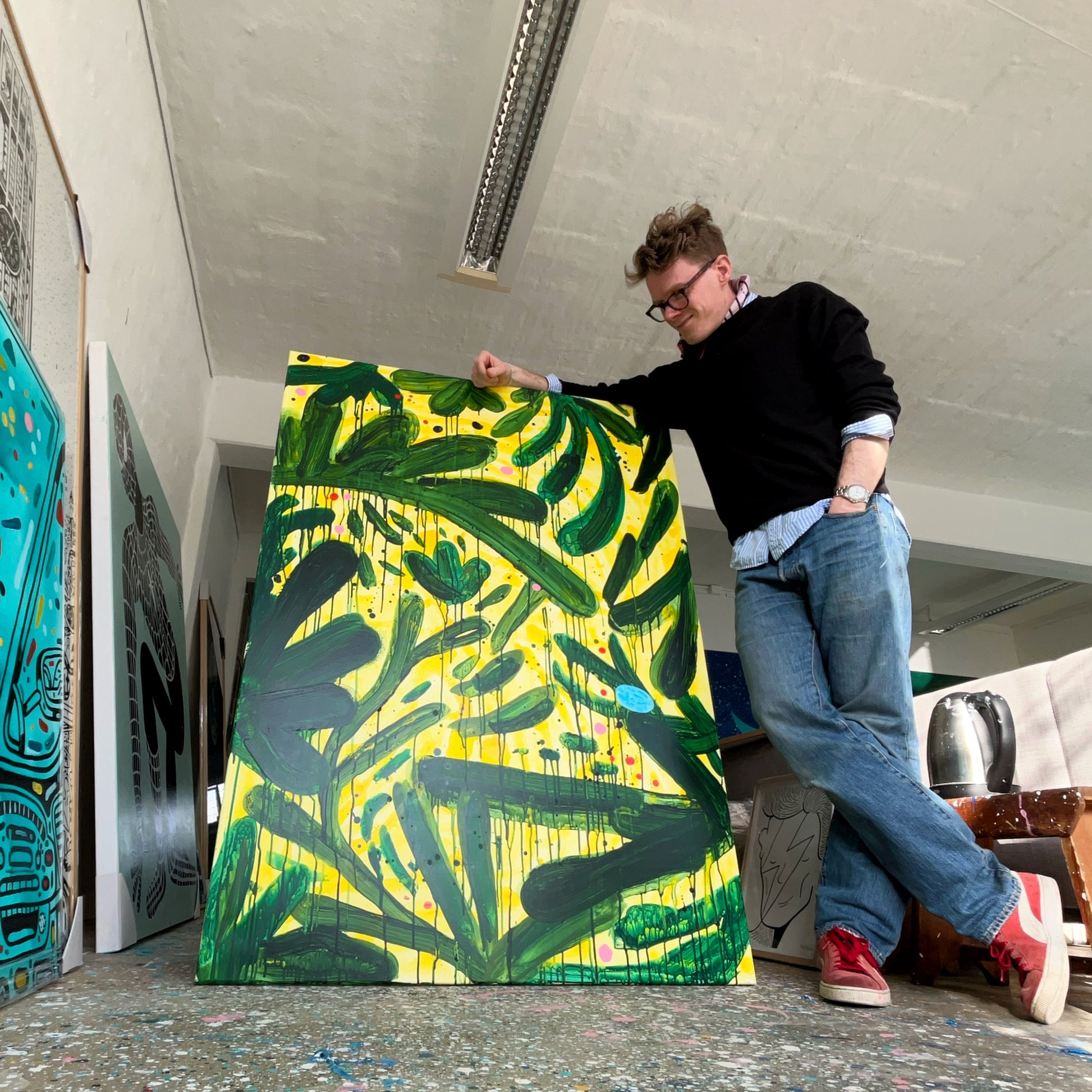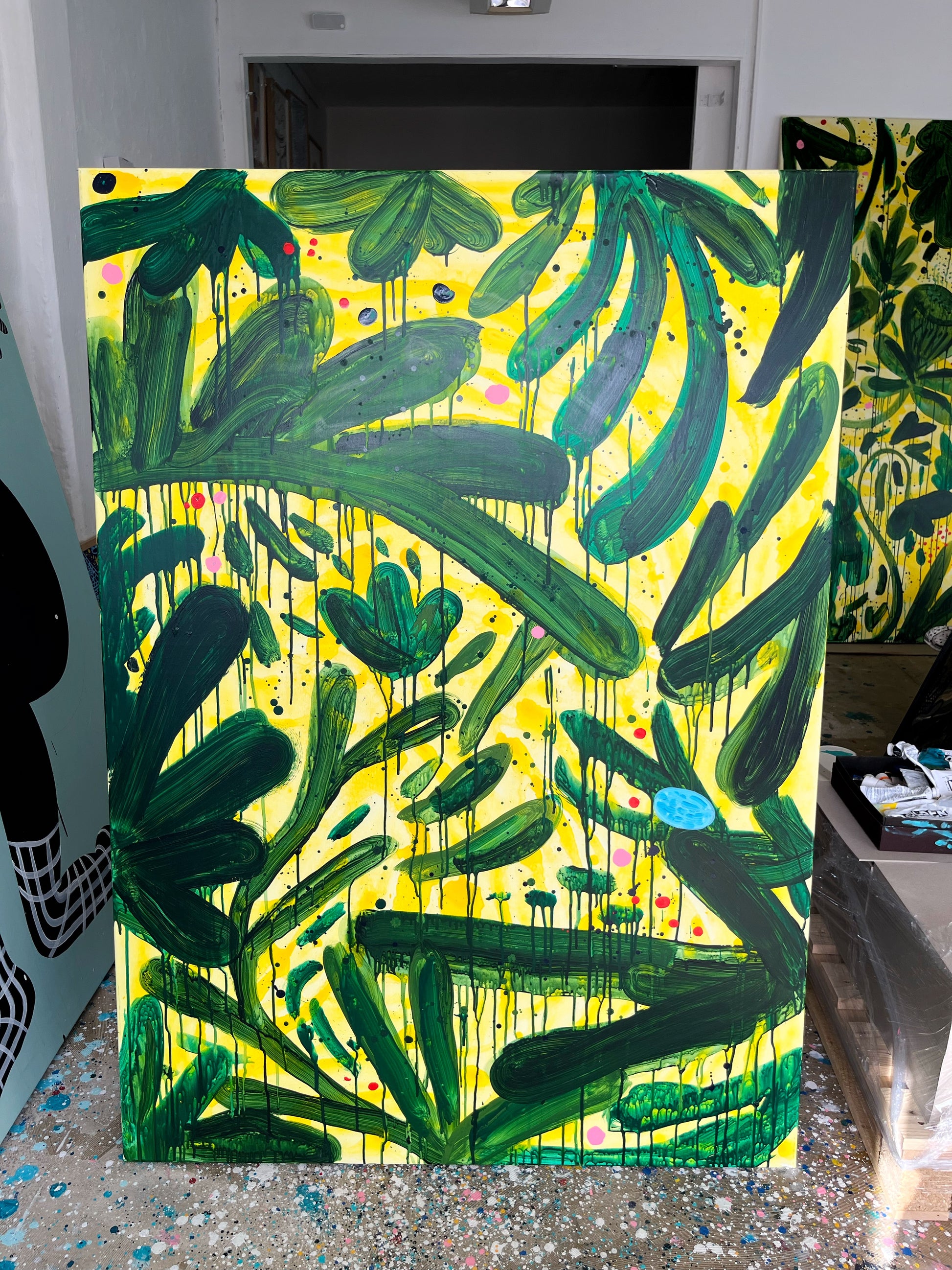 Akryl på håndbygget hør canvas.