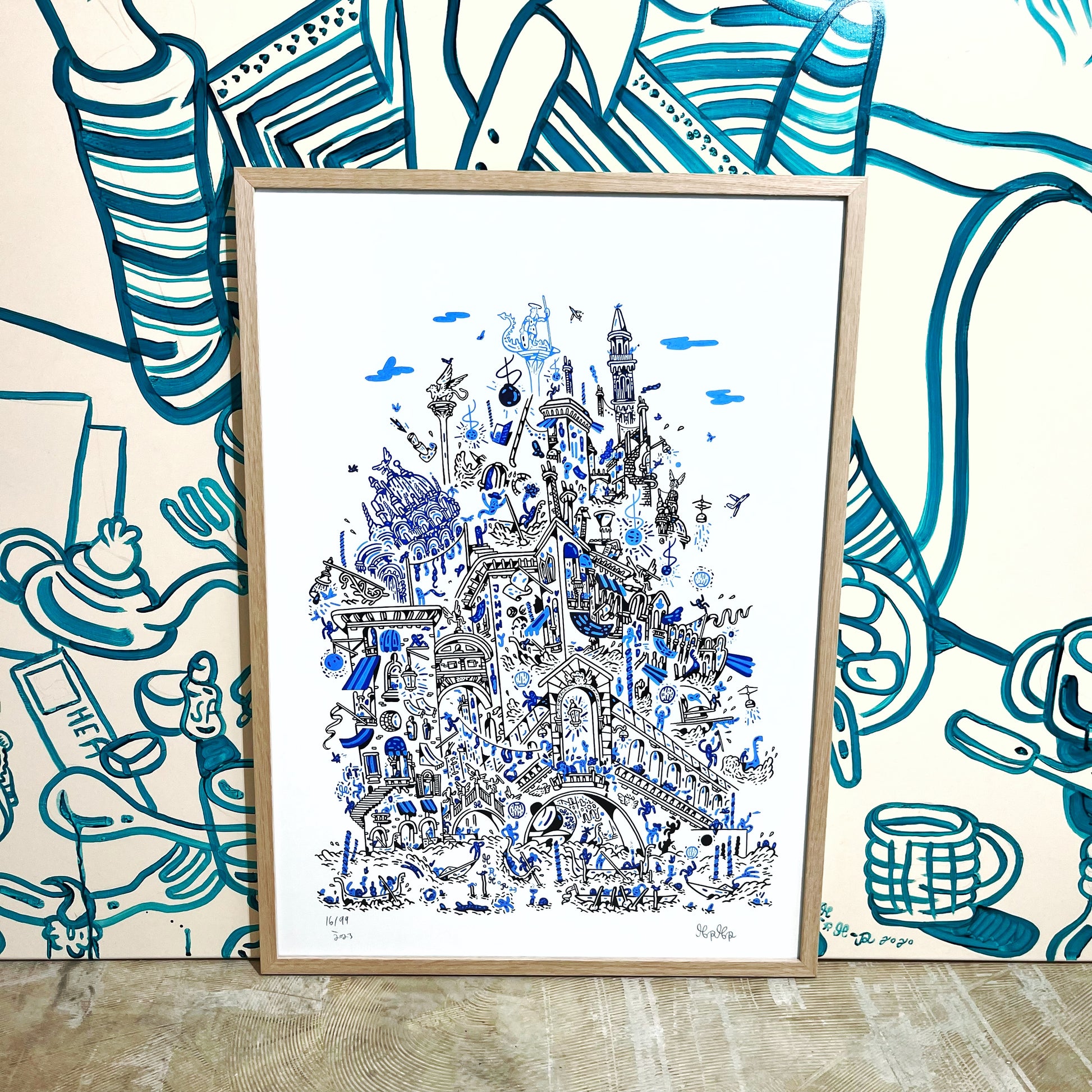 Venedig værket findes både som dekoration på indpakningen til en ny Nordic Tales lampe og som printet du ser her.